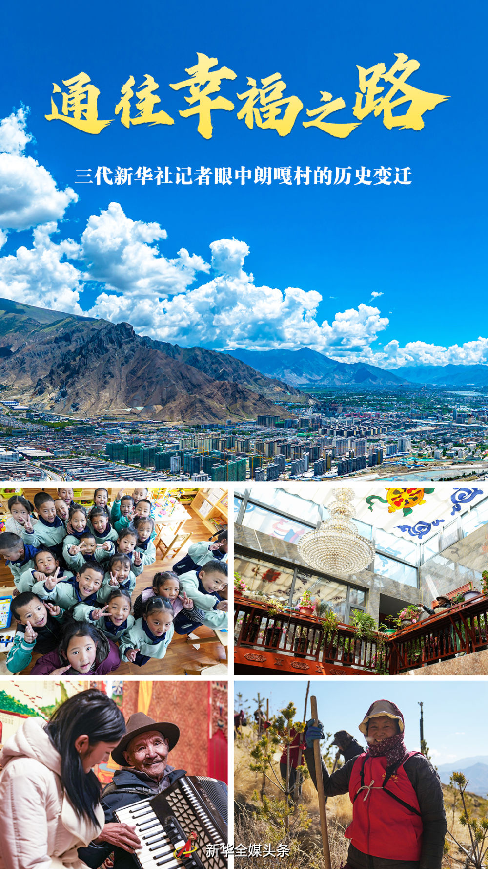 “短短幾十年,跨越上千年”。朗嘎村65年的嬗變,生動注釋了西藏民主改革后創(chuàng)造的歷史奇跡,鮮明表達(dá)了雪域高原人民的奮斗心聲——通往幸福之路。