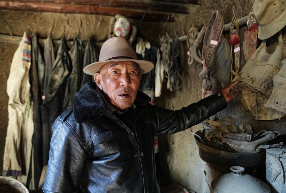 雖然背有點(diǎn)駝,聽力也差,79歲的朗杰老人仍堅(jiān)持戴著禮帽,衣著得體,精神矍鑠。講起從前的事情,老人思路很清晰,表達(dá)也有力。