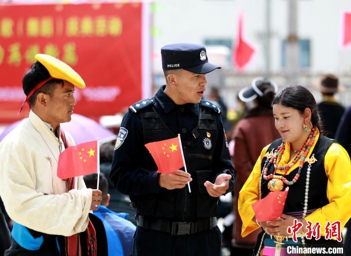 28日,西藏自治區(qū)日喀則市吉隆出入境邊防檢查站移民管理警察與駐地各單位干部職工及當(dāng)?shù)孛癖姽餐_展系列活動紀(jì)念西藏民主改革65周年。