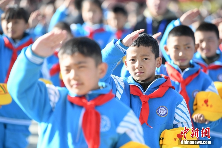 3月28日,西藏各族各界人士聚集在拉薩布達拉宮廣場,升國旗、唱國歌,參加西藏百萬農(nóng)奴解放65周年紀念活動。圖為升國旗儀上的學(xué)生代表。中新社記者 貢嘎來松 攝