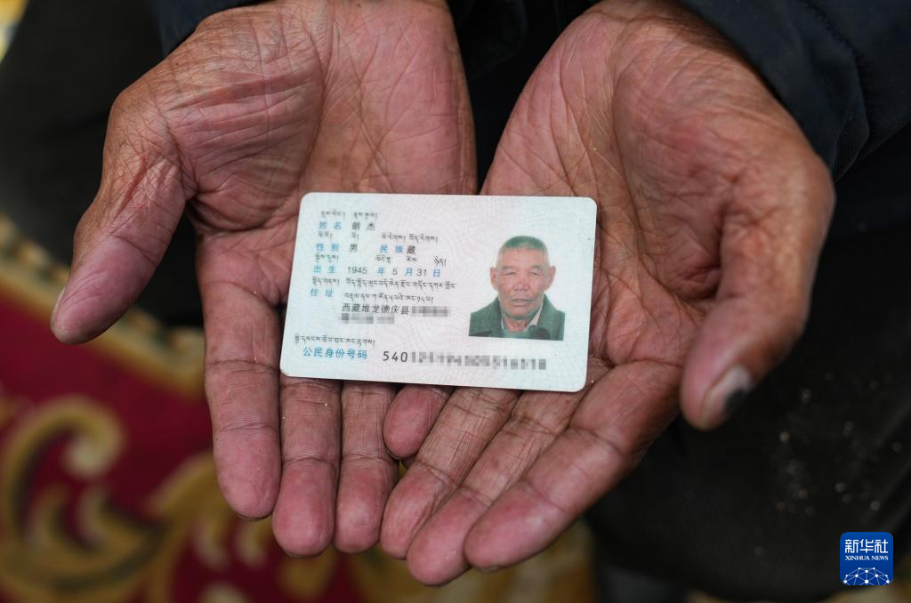 朗杰展示自己的身份證(3月13日攝)。新華社記者 晉美多吉 攝