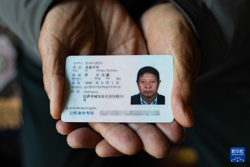 洛桑貢布展示自己的身份證(3月27攝)。