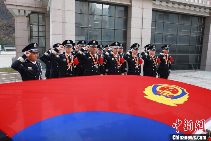 2日,西藏吉隆出入境邊防檢查站在吉隆口岸舉行戍守邊疆紀念章頒發(fā)儀式,20名移民管理警察獲頒銅制戍邊紀念章。