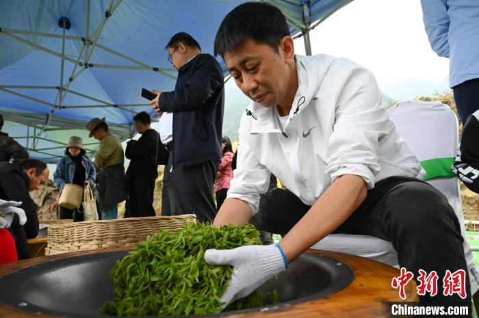 圖為制茶師將群眾體驗(yàn)采摘而來(lái)的茶青炒成茶。趙朗 攝