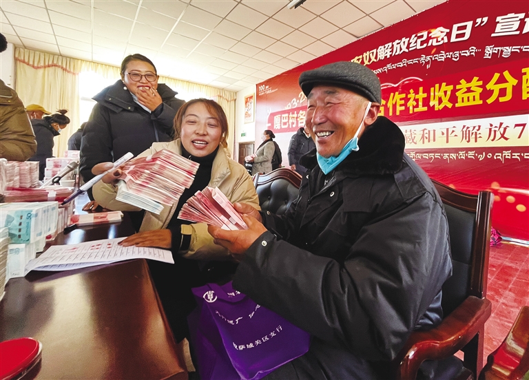 65年來,西藏城鄉(xiāng)居民人均可支配收入之比持續(xù)縮小,農(nóng)業(yè)勞動(dòng)生產(chǎn)率穩(wěn)步提升。2019年,西藏62.8萬建檔立卡貧困人口全部脫貧、74個(gè)貧困縣(區(qū))全部摘帽,歷史性消除了絕對(duì)貧困。
