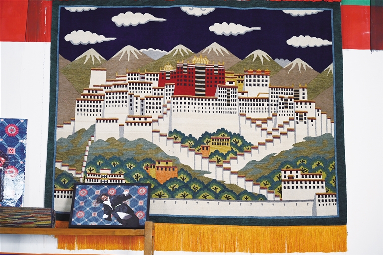 在藏毯廠陳列廳里,懸掛著一幅以布達(dá)拉宮為題材的藏毯?!把矍暗倪@幅藏毯已經(jīng)懸掛十年,沒有任何變形。”喀瓦堅(jiān)藏毯廠工作人員彭志紅說,可見手工藏毯的質(zhì)量絕佳。