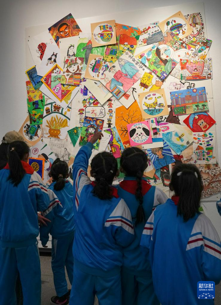 4月19日,拉薩市的小學(xué)生在參觀畫展。新華社記者 晉美多吉 攝