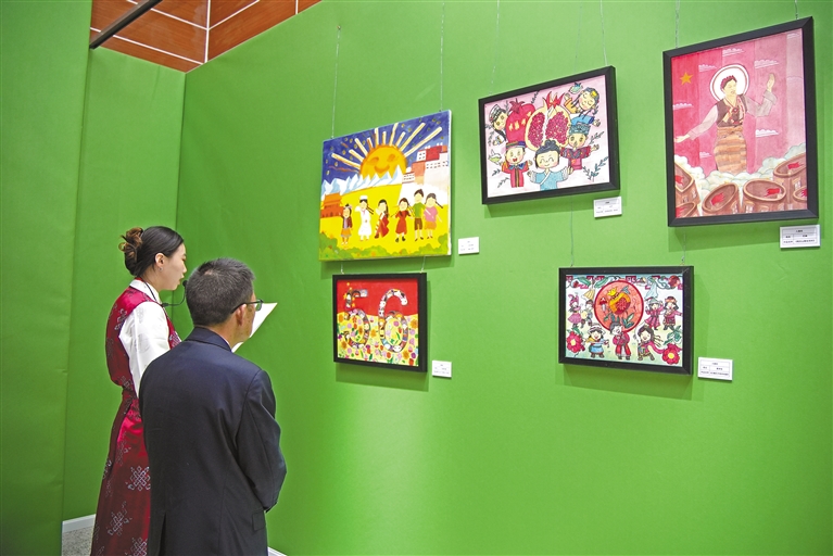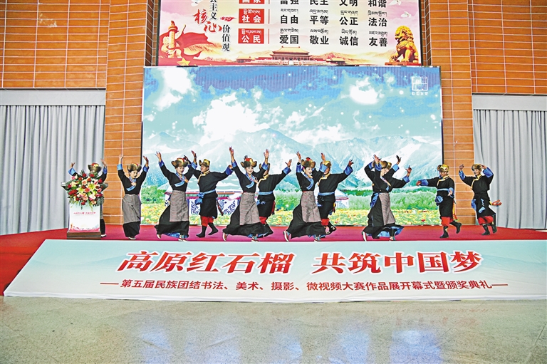 28日,“高原紅石榴 共筑中國夢(mèng)”第五屆民族團(tuán)結(jié)書法、美術(shù)、攝影、微視頻大賽作品展開幕式暨頒獎(jiǎng)典禮在西藏自然科學(xué)博物館舉行。此次展覽將持續(xù)至5月8日。