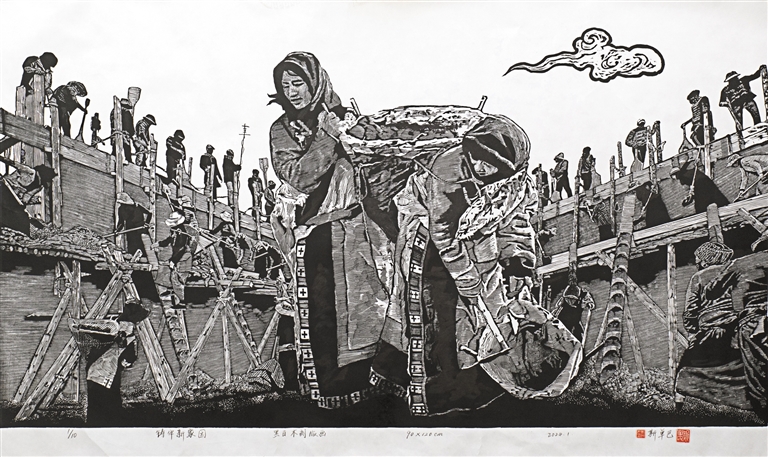美術(shù)二等獎(jiǎng)作品《鑄牢新家園》?!∽髡摺∷箚伟?/p>