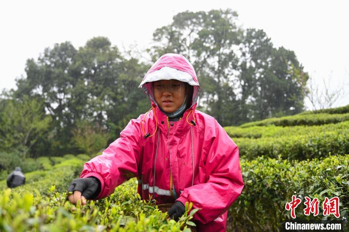 圖為墨脫茶農(nóng)雨中采茶。趙朗 攝