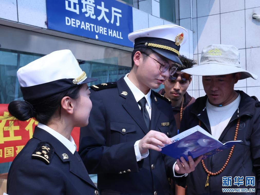 拉薩海關(guān)所屬聶拉木海關(guān)工作人員開展普法宣傳。(拉薩海關(guān)供圖)