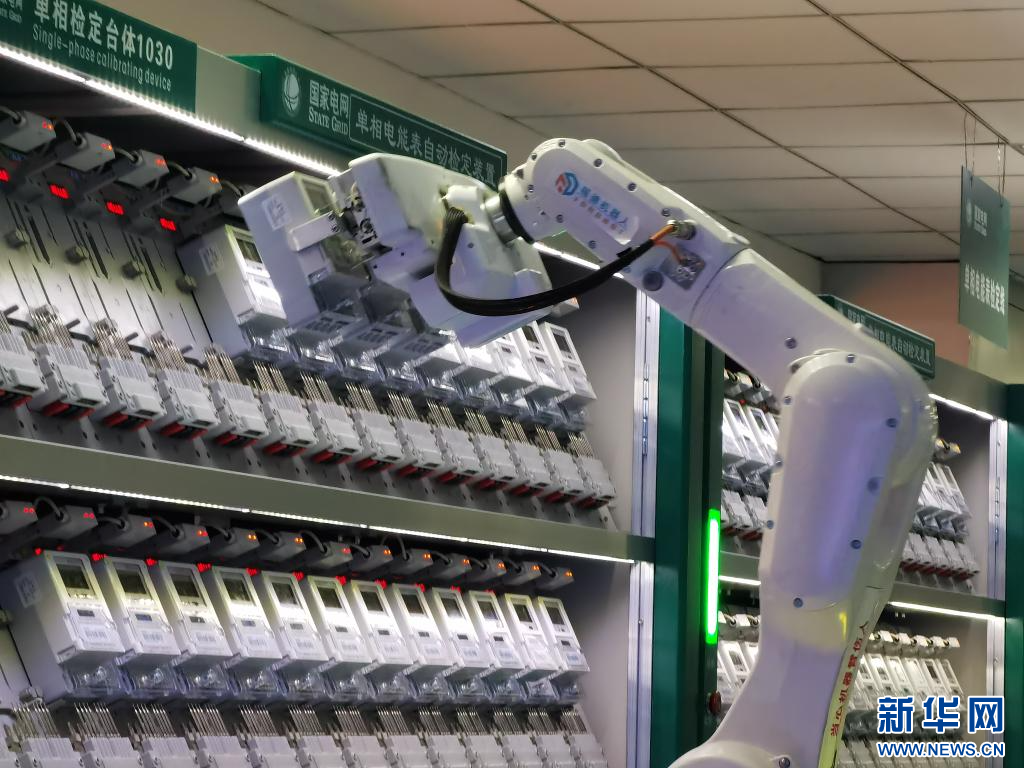 自動(dòng)化檢定機(jī)器人抓取電能表。新華網(wǎng) 發(fā)(任偉寧 攝)