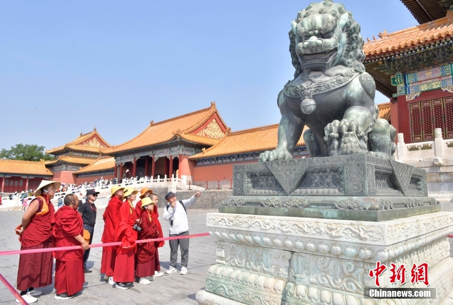 5月19日至23日,西藏少年活佛參學團來到北京參觀學習,在清代藏傳佛教皇家寺院知古鑒今。圖為5月21日,西藏少年活佛參學團到北京故宮博物院參訪。