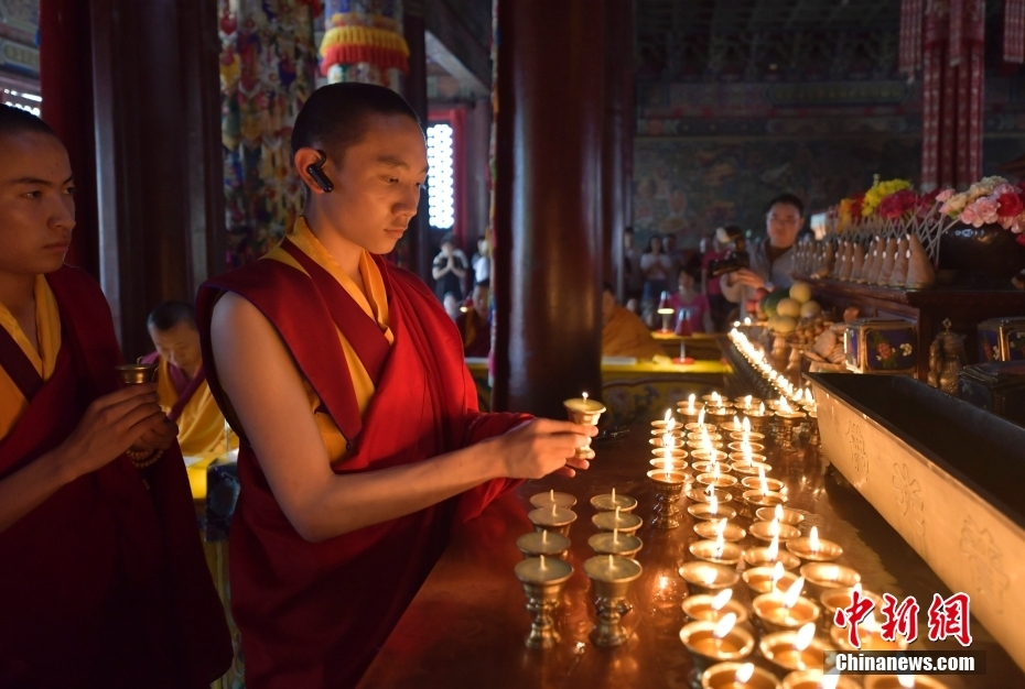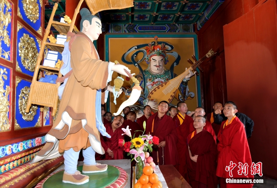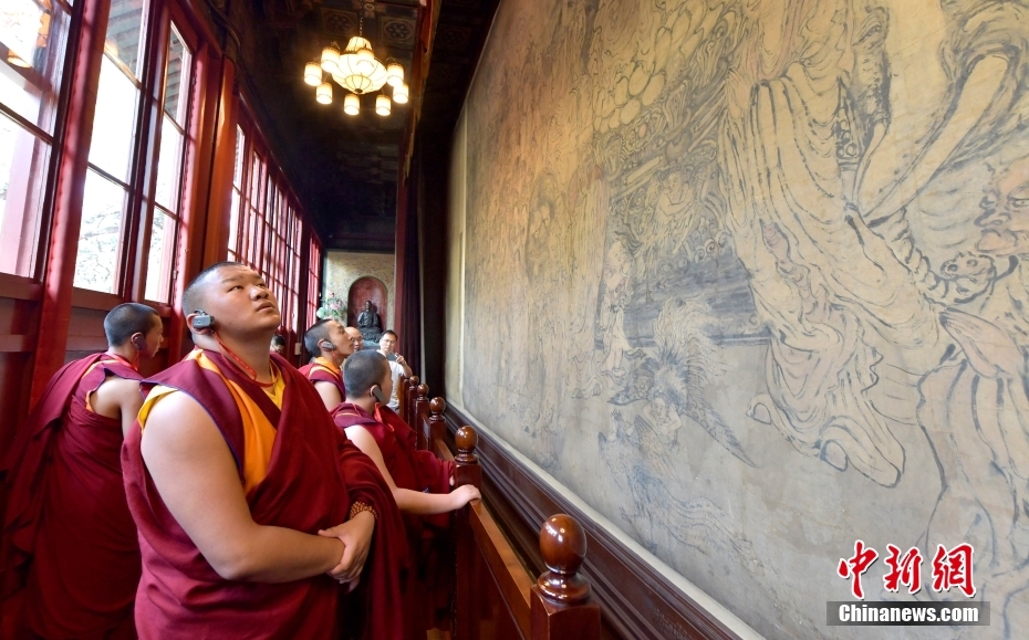 5月19日至23日,西藏少年活佛參學團來到北京參觀學習,在清代藏傳佛教皇家寺院知古鑒今。圖為5月20日,西藏少年活佛參學團到北京廣濟寺參訪。