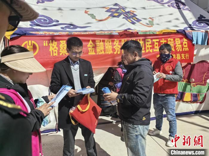 圖為在邊貿(mào)點(diǎn),“格?;ā苯鹑诜?wù)隊(duì)開展服務(wù)。國家金融監(jiān)督管理總局西藏監(jiān)管局供圖
