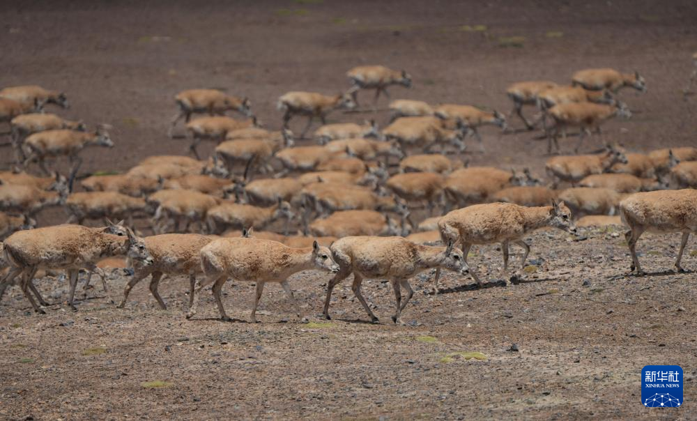 遷徙途中的藏羚羊(6月14日攝)。新華社記者 旦增尼瑪曲珠 攝