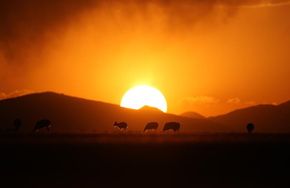 魯確塘草原上,夕陽下的藏羚羊(6月16日攝)。新華社記者 晉美多吉 攝
