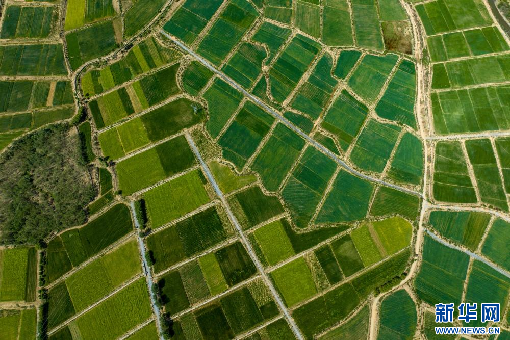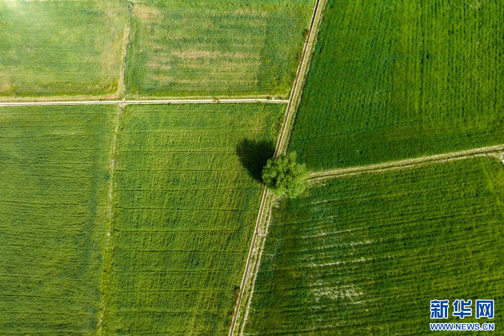 6月23日在西藏山南市乃東區(qū)境內(nèi)拍攝的田園風(fēng)光(無(wú)人機(jī)照片)。新華網(wǎng) 旦增努布 攝