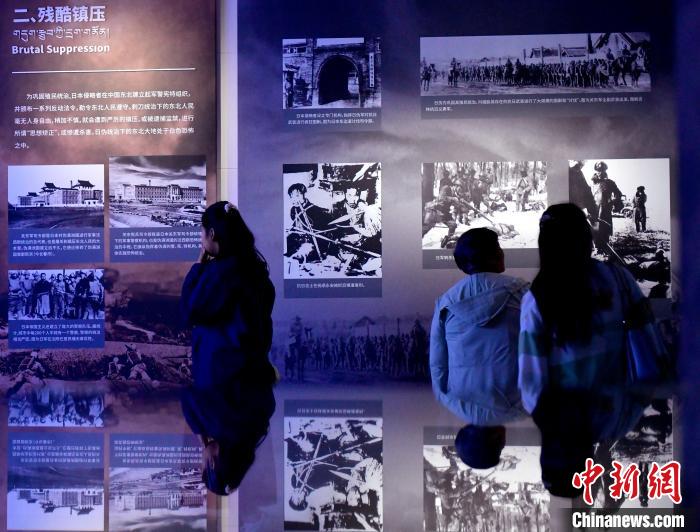 7月1日,《勿忘國(guó)恥 振興中華——日本侵略中國(guó)東北史實(shí)展》在位于拉薩的西藏博物館開展。該展覽由西藏自治區(qū)文物局主辦,西藏博物館、偽滿皇宮博物院共同承辦。圖為觀眾正在觀看展覽中的展品。中新社記者 李林 攝