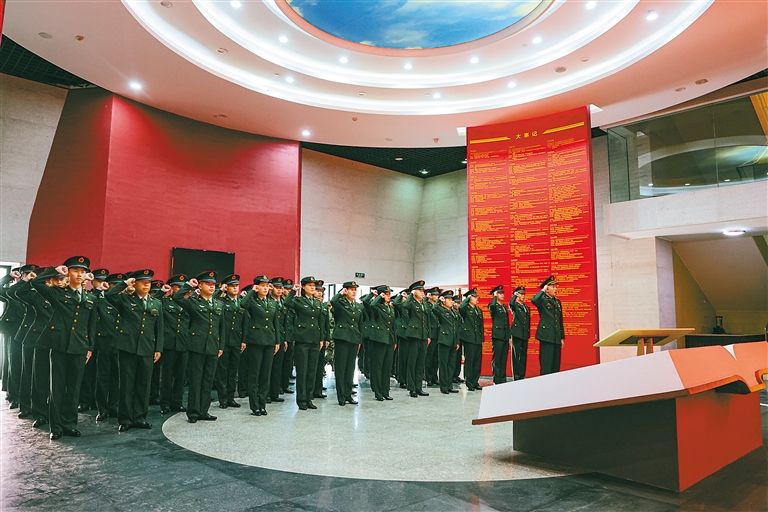 圖為拉薩警備區(qū)某團(tuán)組織黨員參觀西藏軍區(qū)軍史陳列館,重溫入黨誓詞。記者 唐斌 通訊員 何琪 攝