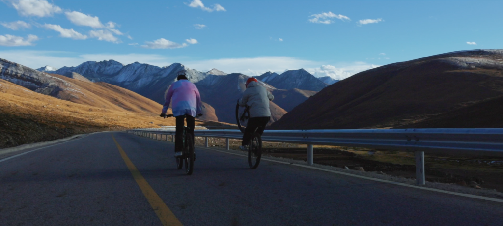 旦增吉美(左)和隊友在騎車的路上