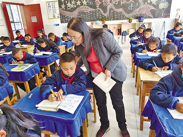 廣東省第三批“組團式”教育援藏隊員韓詠梅在察隅縣小學(xué)授課。