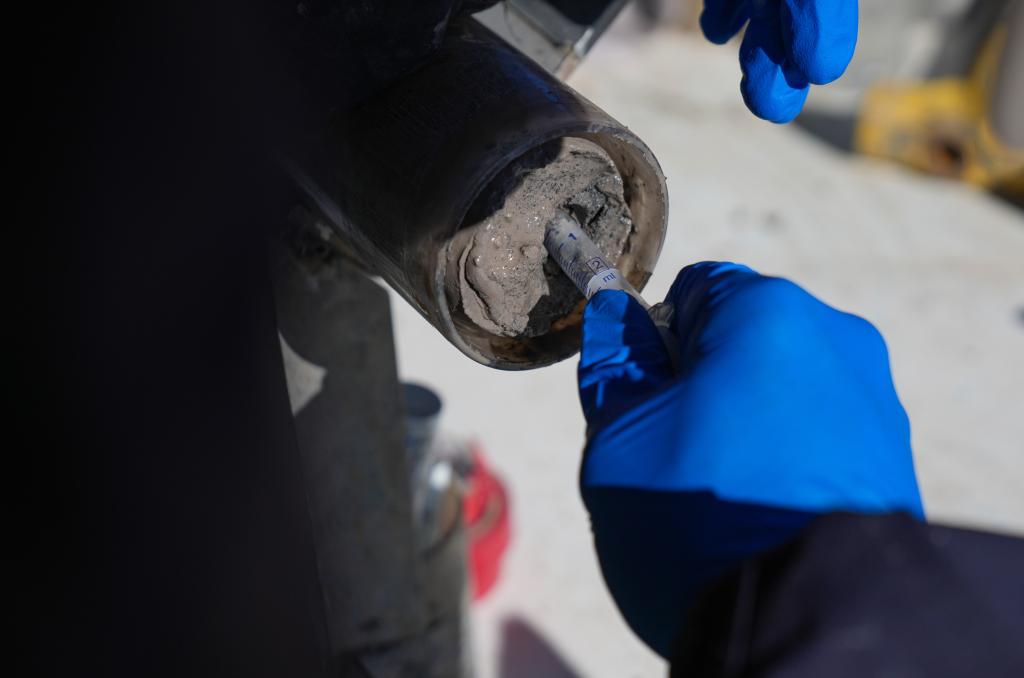 鉆取含有泥土、砂石的湖泊巖芯卻是一項(xiàng)復(fù)雜且精細(xì)的工作。科研人員利用集成的鉆探系統(tǒng),小心翼翼地從湖底取出連續(xù)的湖泊巖芯樣本,這些裝著湖泊巖芯的采樣管如同“時(shí)間膠囊”,封存著青藏高原納木錯(cuò)地區(qū)百萬年來的環(huán)境氣候變化信息。