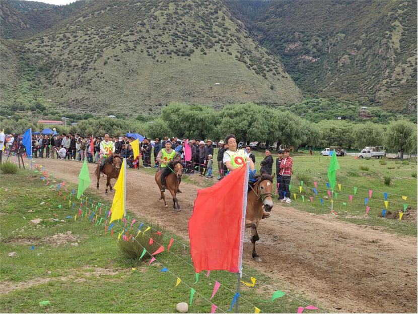 7月22日,林芝鎮(zhèn)第七屆尼洋旅游文化之民俗賽馬藝術(shù)節(jié)在西藏林芝市巴宜區(qū)林芝鎮(zhèn)嘎拉村舉行。賽場上,駿馬奔騰,選手們策馬揚鞭,激烈角逐,觀眾的喝彩聲此起彼伏,場面熱鬧非凡。據(jù)了解,已舉辦七屆的賽馬藝術(shù)節(jié)不僅是當?shù)氐膫鹘y(tǒng)節(jié)慶,更是展示地方文化經(jīng)濟特色的盛會。