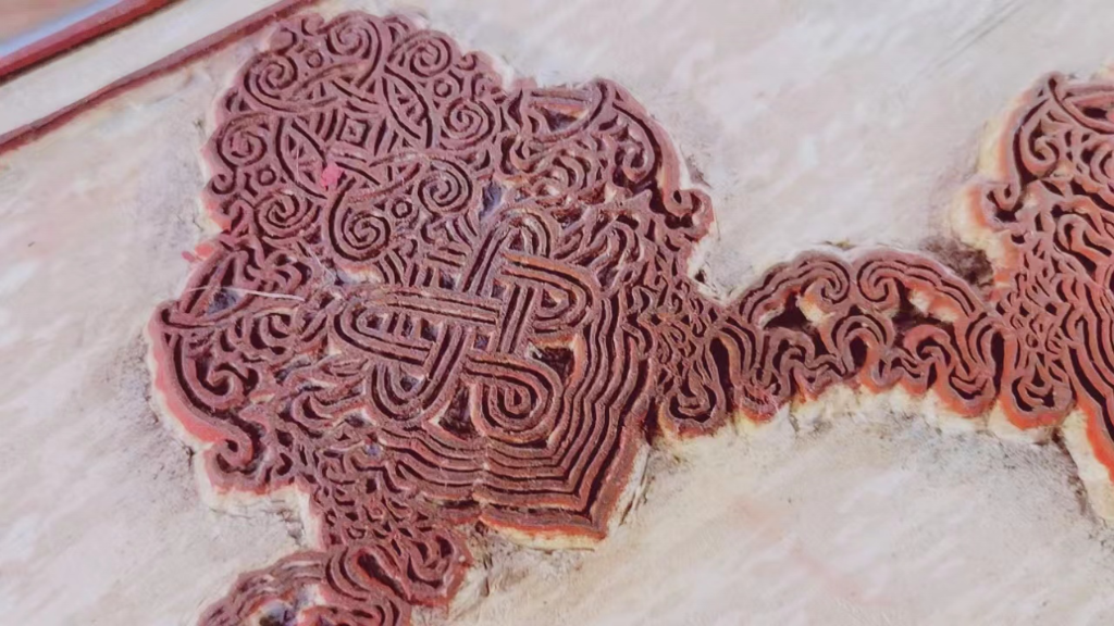 雕版印刷從內(nèi)地傳入西藏已有近千年歷史。饕餮、龍鳳、雙魚(yú)、長(zhǎng)城紋、萬(wàn)字紋等中華民族的共同元素符號(hào),在雕版上隨處可見(jiàn)。細(xì)心觀察可見(jiàn),一些裝飾紋樣的花邊被古人設(shè)計(jì)成迷宮,經(jīng)過(guò)一番摸索可以走通。