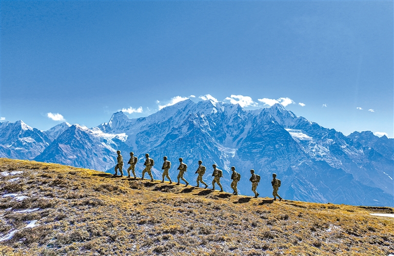 圖為駐藏某部官兵巡邏途中。崔運(yùn)紅 攝