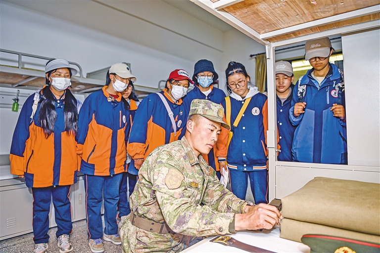 圖為八一建軍節(jié)前夕,西藏日喀則軍分區(qū)聯(lián)合日喀則市委宣傳部開展“強(qiáng)國復(fù)興有我”系列軍旅活動(dòng),組織青少年學(xué)生零距離感受軍營風(fēng)采,切實(shí)提高國防意識(shí),激發(fā)愛國主義情懷。這是學(xué)生們參觀官兵宿舍。通訊員 馮千恩 劉煜欽 記者 楊子彥 攝
