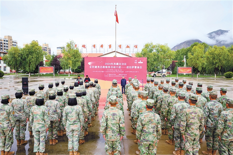 圖為近日,西藏自治區(qū)體育局及體育總會(huì)干部職工走進(jìn)駐藏某部,開展全民健身志愿服務(wù)“六進(jìn)”暨送體育進(jìn)部隊(duì)活動(dòng)。這是活動(dòng)現(xiàn)場(chǎng)。通訊員 梁康 記者 唐斌 攝