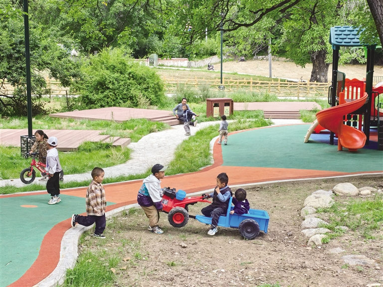 在加查“長(zhǎng)壽村”玩耍的孩童。