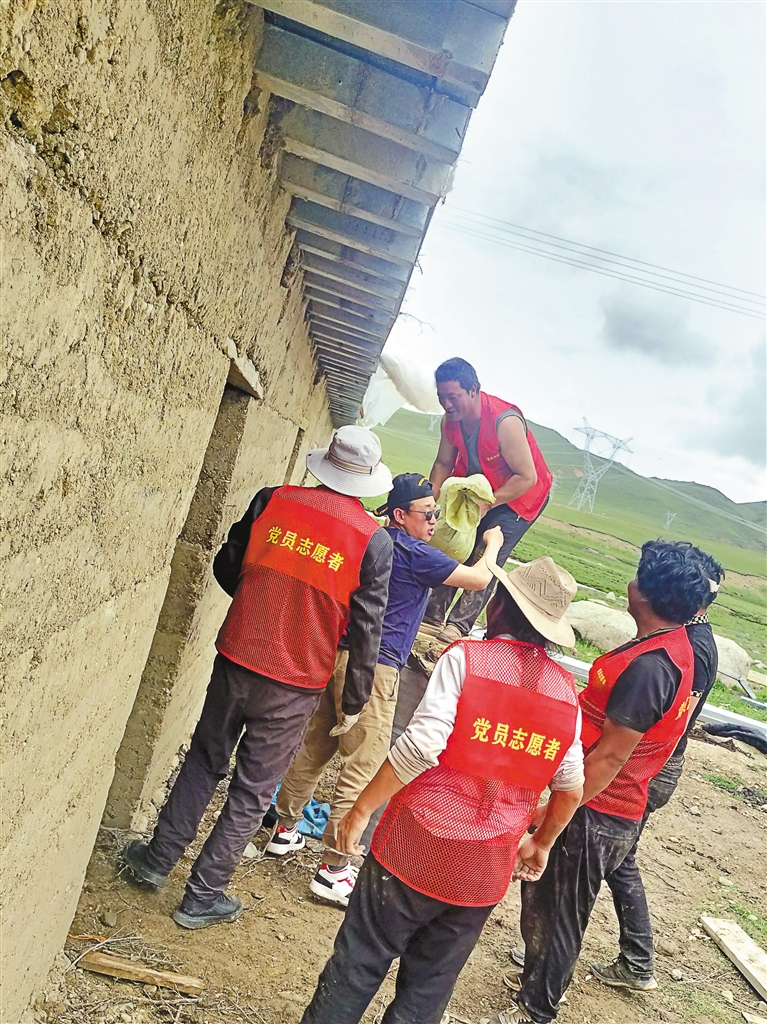 覺(jué)尼村黨員干部幫村民維修牛棚。記者 周婷婷 攝