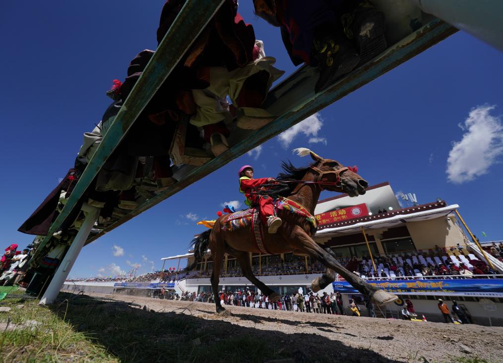 8月12日,上百匹賽馬在10公里傳統(tǒng)大跑項(xiàng)目中角逐。新華社記者晉美多吉攝