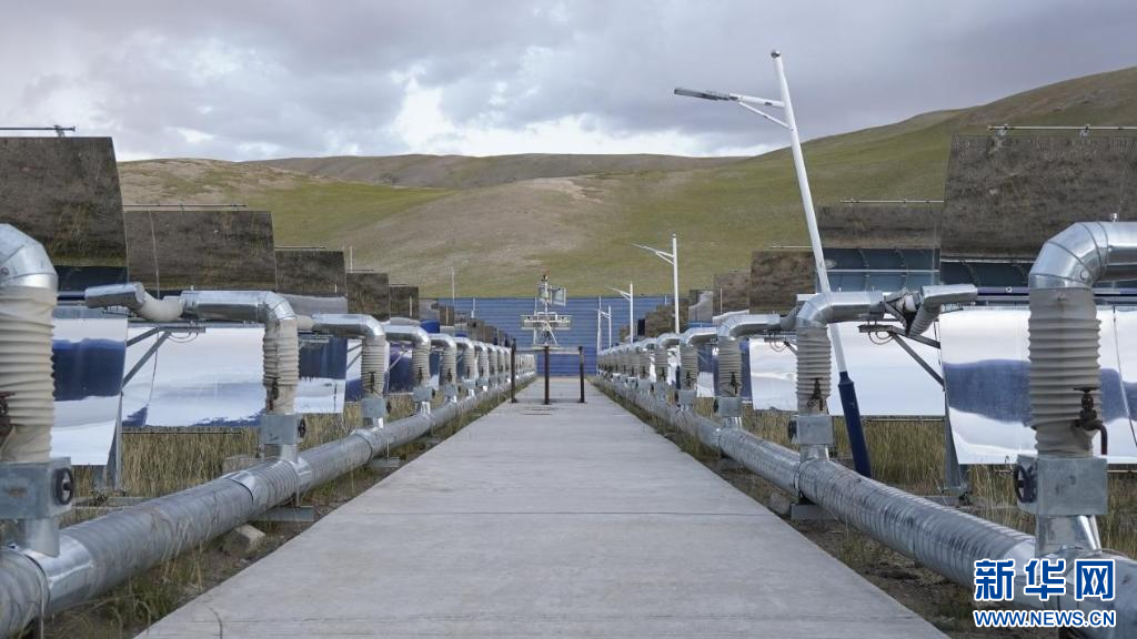 申扎縣城集中供暖項(xiàng)目太陽(yáng)能集熱場(chǎng)一角(8月25日攝)。新華網(wǎng) 謝炆圻 攝