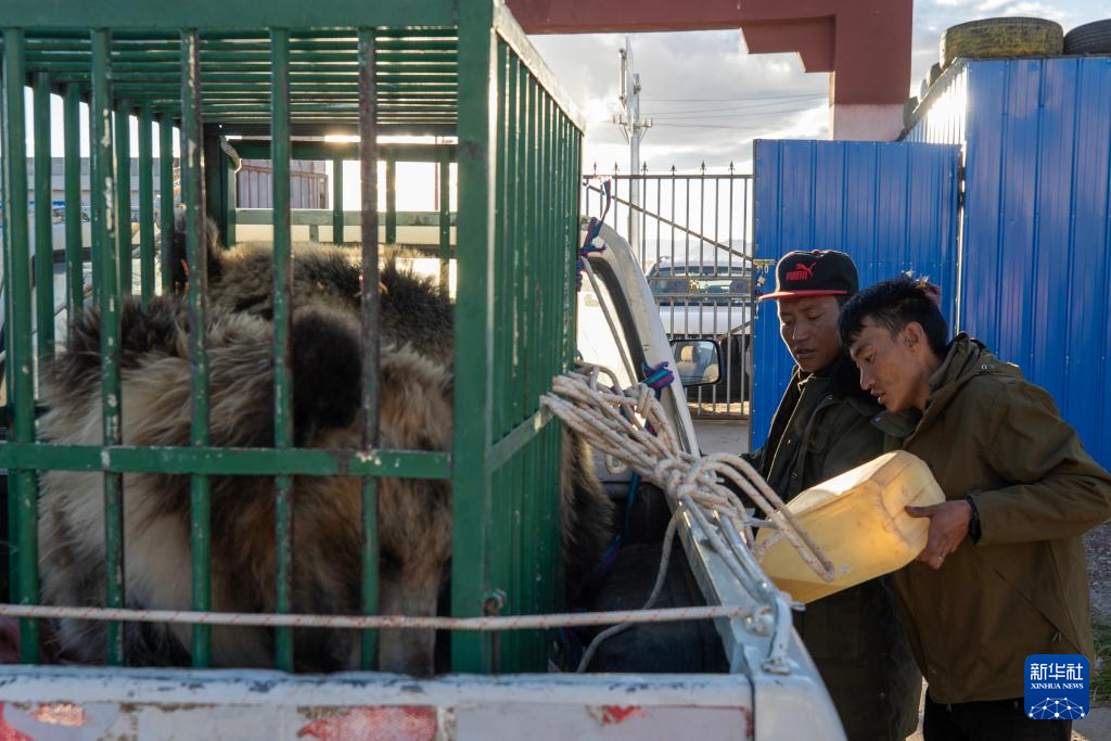 野保隊員在西藏那曲市尼瑪縣羅布玉杰野生動物管護站為放歸棕熊做準備(8月30日攝)。新華社記者 姜帆 攝
