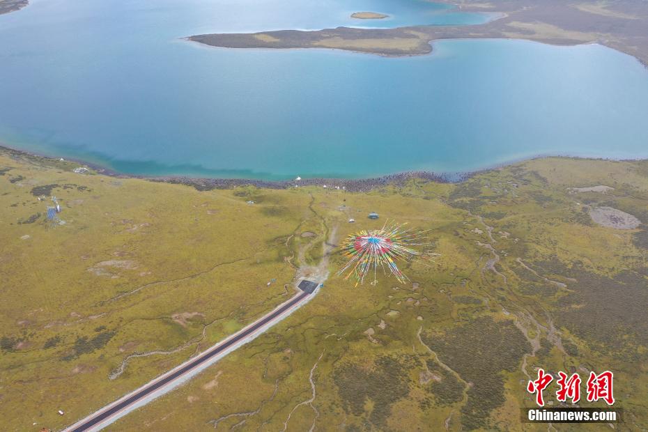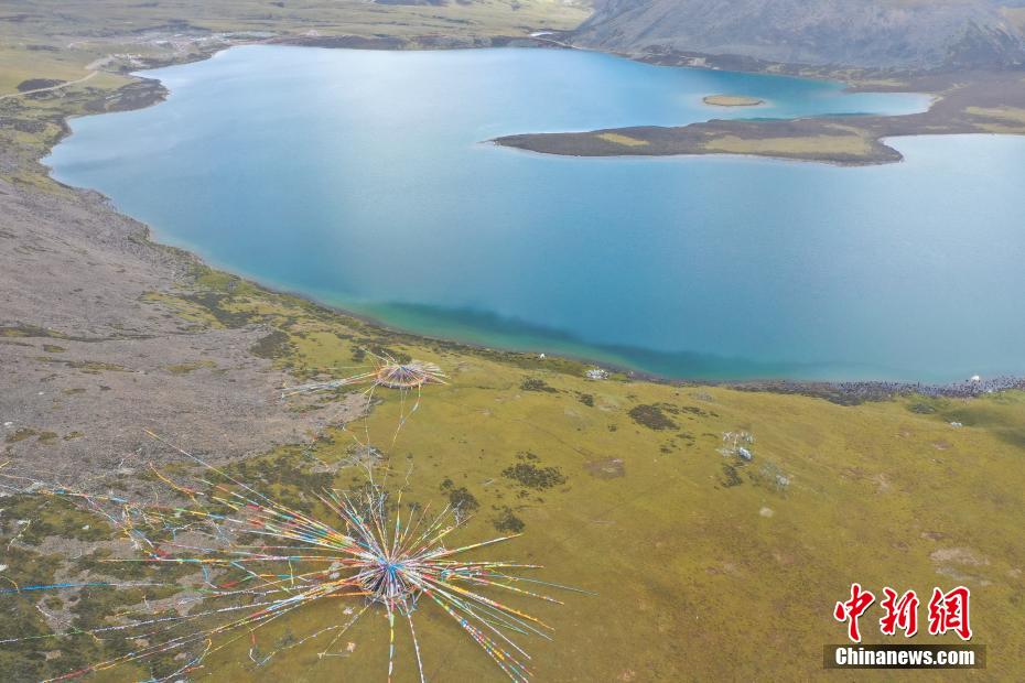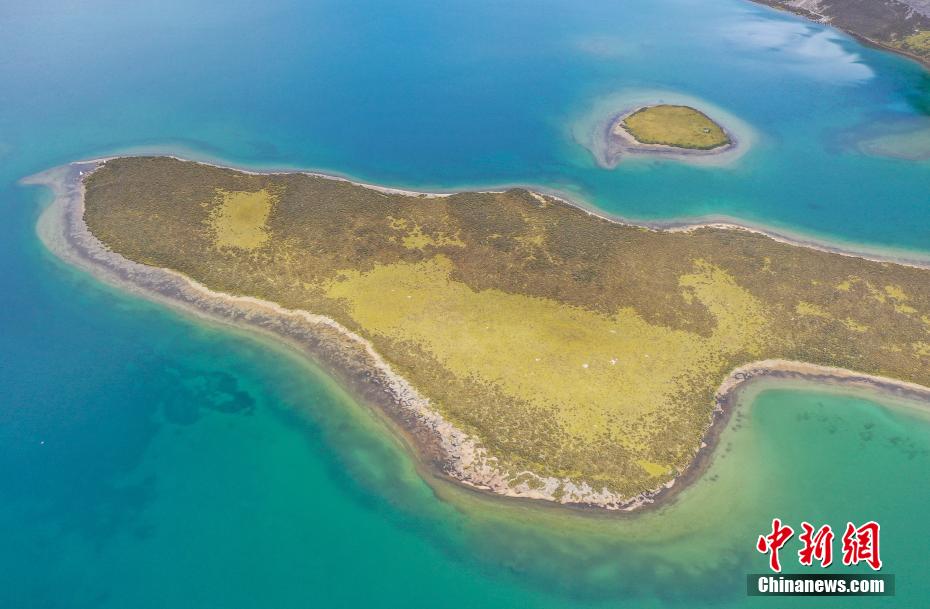 9月6日,思金拉措景區(qū)風(fēng)光秀麗。思金拉措湖位于西藏拉薩市墨竹工卡縣,海拔4500米,湖邊群山高聳、草甸金黃。從空中俯瞰,思金拉措湖心島如同“黃金右腳”踢球。圖為思金拉措湖心島。(無人機(jī)照片)