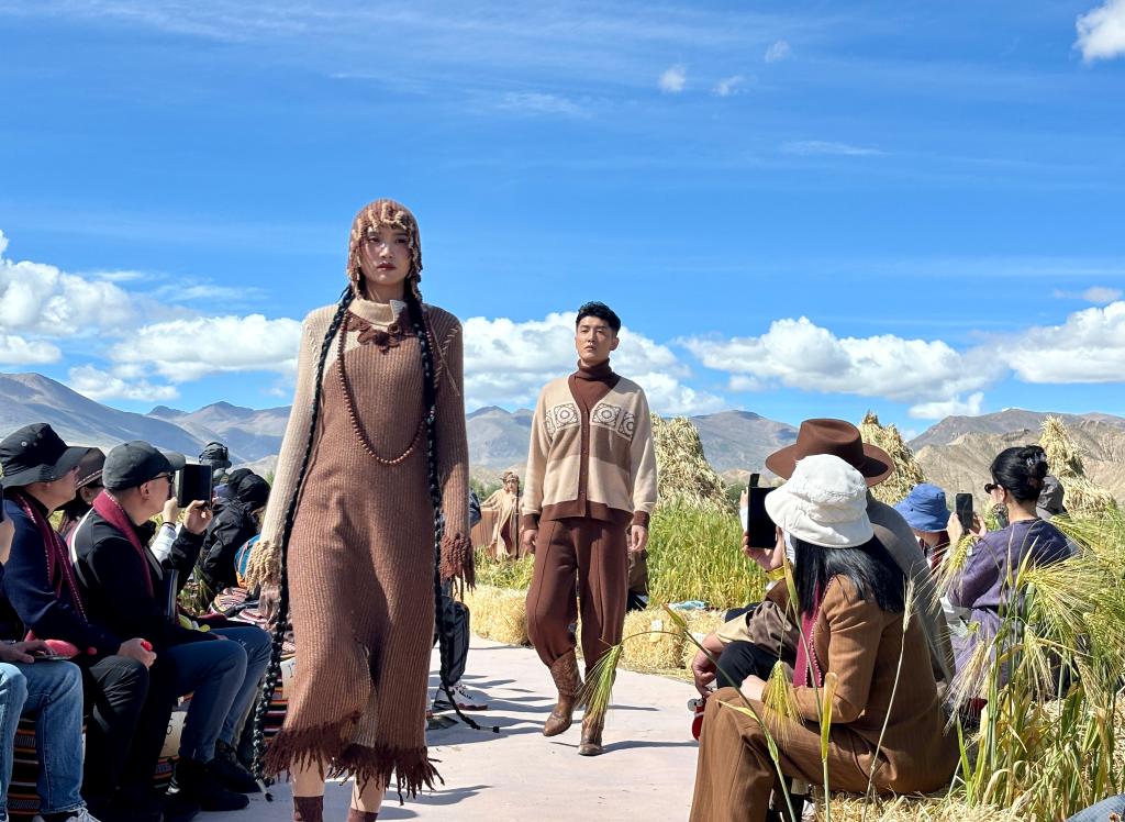 非遺氆氌變成時(shí)尚服飾亮相秀場(chǎng)。新華社記者 王辰陽 攝