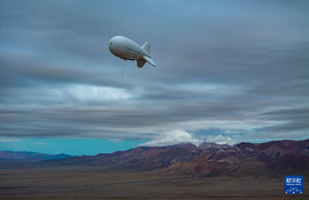 形似“大白鯨”的極目一號Ⅰ型浮空艇14日在西藏雙湖完成了22天來的第8次科學(xué)觀測。