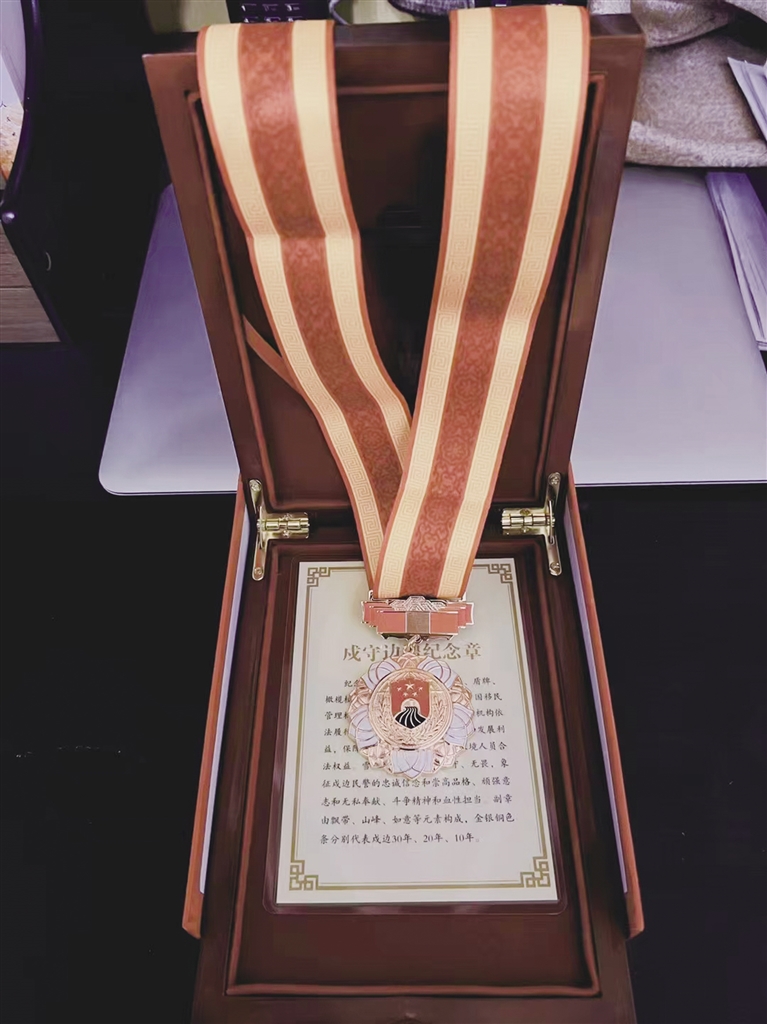 2023年4月17日,拉巴旦增收到了由國(guó)家移民管理局頒發(fā)的戍守邊疆銅質(zhì)紀(jì)念章,證書上附有說(shuō)明:金銀銅色條分別代表戍邊30年、20年、10年。目前,拉巴旦增手握銅質(zhì)紀(jì)念章,但他的目光已望向更遙遠(yuǎn)的未來(lái),正如他置頂朋友圈里那句擲地有聲的標(biāo)語(yǔ):一生只做一件事,我為祖國(guó)守邊疆。轉(zhuǎn)眼14載春秋,拉巴旦增以滿腔熱血和不懈堅(jiān)持,將年少的小小夢(mèng)想繪成祖國(guó)邊陲的輝煌篇章,深深詮釋了“因?yàn)闊釔鄱档谩薄?/p>