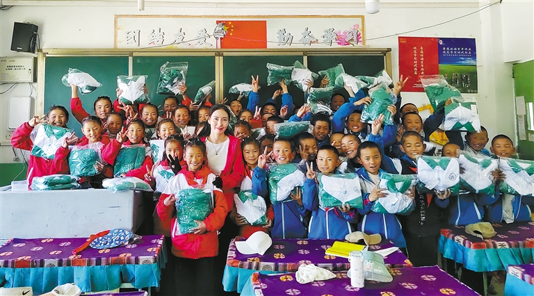 2014年至今,日喀則市南木林縣黨員扎西拉姆積極投身慈善事業(yè),用無(wú)私奉獻(xiàn)詮釋著鄰里守望相助和民族團(tuán)結(jié)的真諦。圖為扎西拉姆(中)與受助孩子合影。