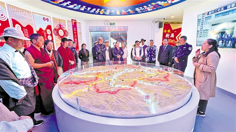9月14日,拉孜縣曲下鎮(zhèn)以鑄牢中華民族共同體意識(shí)為主線(xiàn),舉辦首屆“格桑花開(kāi)石榴紅·凝心鑄魂新征程”運(yùn)動(dòng)會(huì)暨“迎中秋、慶團(tuán)結(jié)”茶話(huà)會(huì)?!D為各民族群眾代表參觀拉孜縣鑄牢中華民族共同體意識(shí)教育館。