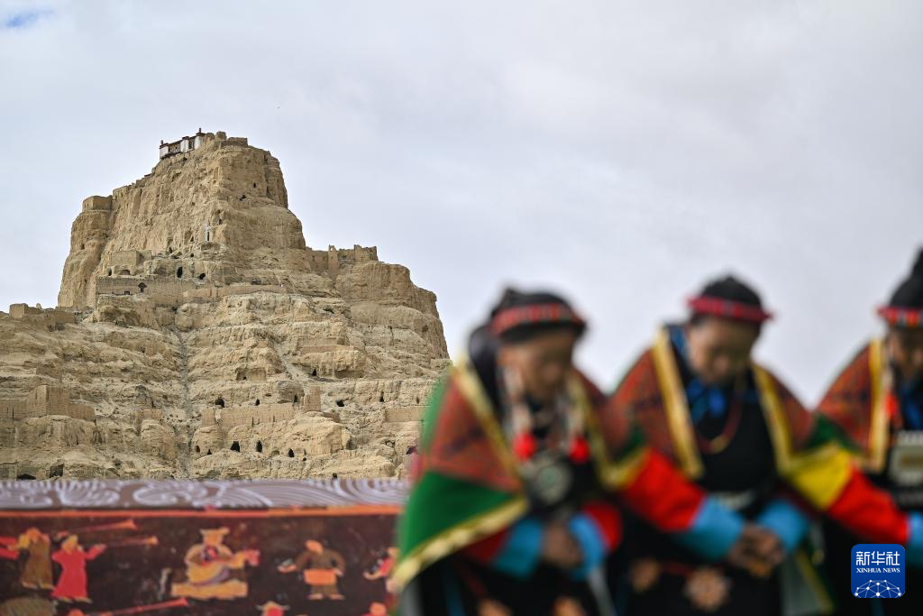 在西藏阿里地區(qū)札達(dá)縣古格王國遺址腳下,當(dāng)?shù)卮迕癖硌荨靶琛保?月11日攝)。新華社記者 孫瑞博 攝