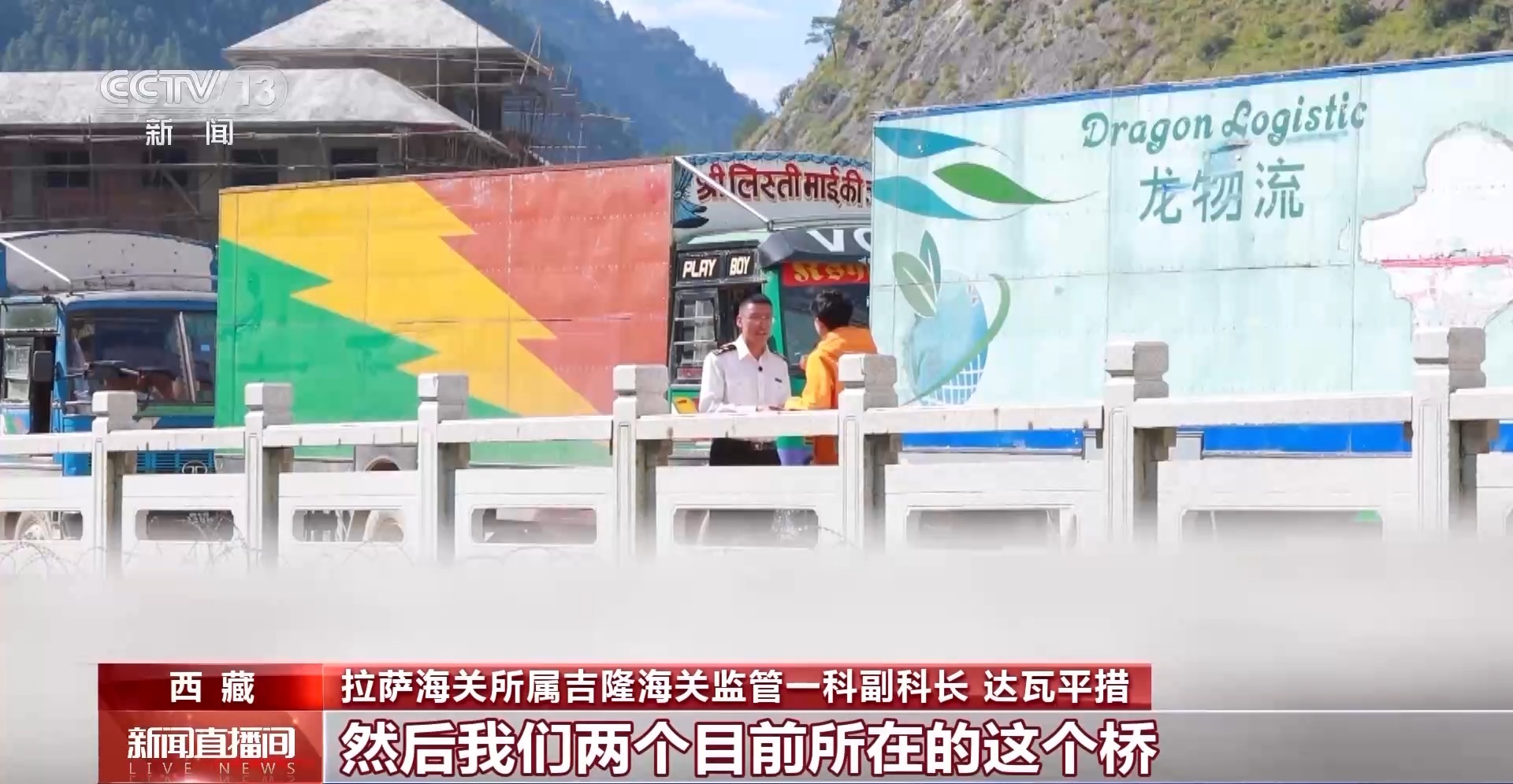 拉薩海關(guān)所屬吉隆海關(guān)監(jiān)管一科副科長 達瓦平措:我們所在的是第四代熱索橋。2015年尼泊爾“4.25地震”,吉隆口岸也是受災(zāi)比較嚴重,然后在第三代的原址基礎(chǔ)上建了第四代橋。對我們?nèi)藛T往來、貿(mào)易往來發(fā)揮了重要作用。