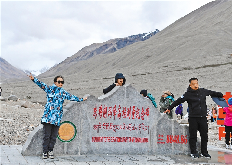 圖為游客在珠峰大本營拍照。記者 劉倩茹 攝