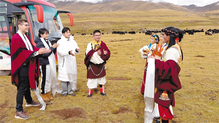 10月13日,中央廣播電視總臺(tái)“跨越山?!「裆;ㄩ_——乘著大巴看中國(guó)·西藏行”大型融媒體活動(dòng)抵達(dá)昌都市貢覺縣。