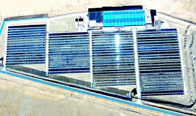 西藏申扎縣城的集中供暖項(xiàng)目太陽(yáng)能集熱場(chǎng)。新華社發(fā)