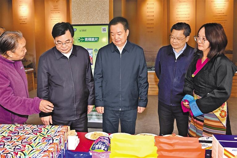 10月16日至17日,甘肅省黨政代表團來藏考察。這是在藏期間,甘肅省黨政代表團考察西藏奇正青稞健康科技有限公司,了解高原特色產業(yè)發(fā)展情況。 本報記者 旦增西旦 攝