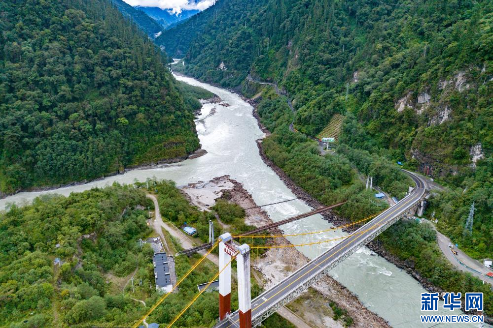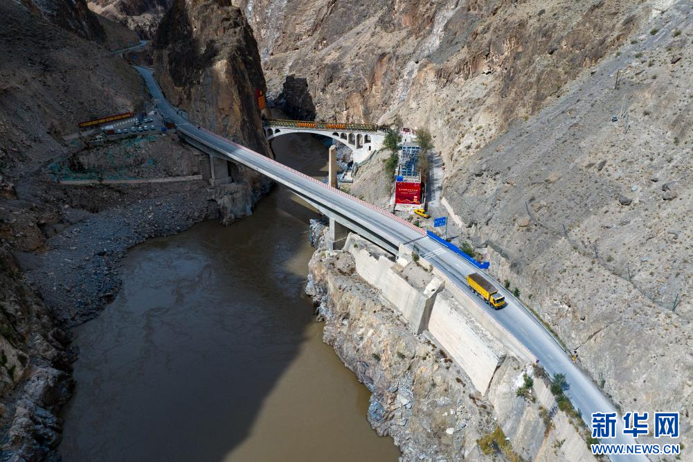 10月13日拍攝的怒江大橋(無人機(jī)照片)。新華網(wǎng) 旦增努布 攝